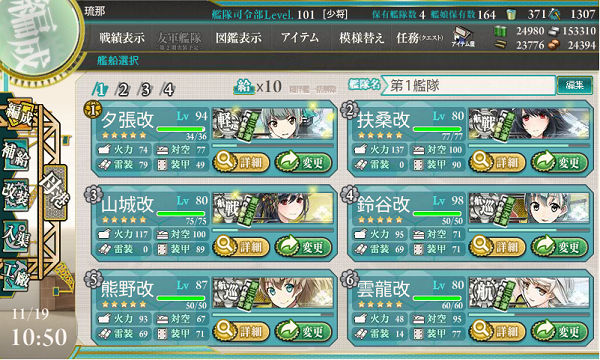 第一艦隊は特に大きくは変えず。