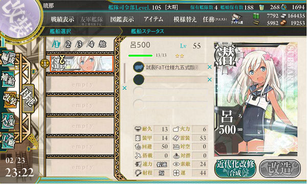 後はイベント期間中3-3(潜水艦6)で菱餅狙えるらしいのでそこもですかね。