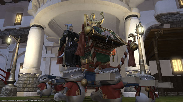 ララフェルもサイドに立って乗るスタイルのマウントですが…。