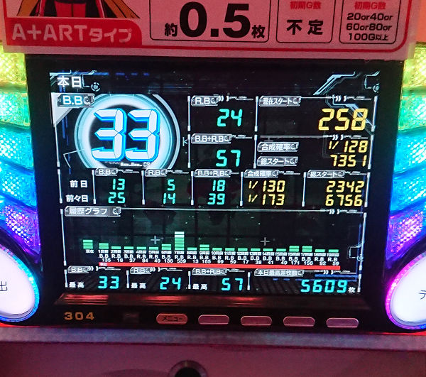 まあ1/140ぐらいで当たってるなら2~3回ボーナス引いて楽しんで帰ろうかなー。