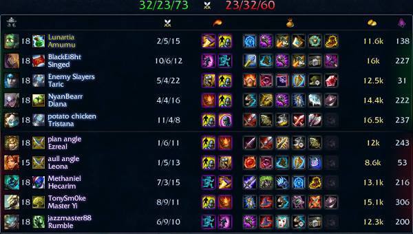 Ranked 184戦目 Solo:Amumu – 2k 5d 15a 11.6kGold 138CS – 勝ち