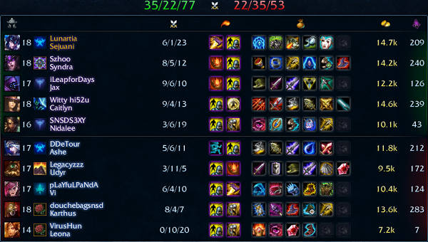 Ranked 772戦目 Solo:Sejuani – 6k 1d 23a 14.7kGold 209CS – 勝ち